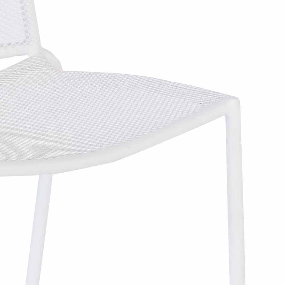 Stackable Outdoor Chair in White Painted Steel, 4 Pieces - Jaila
