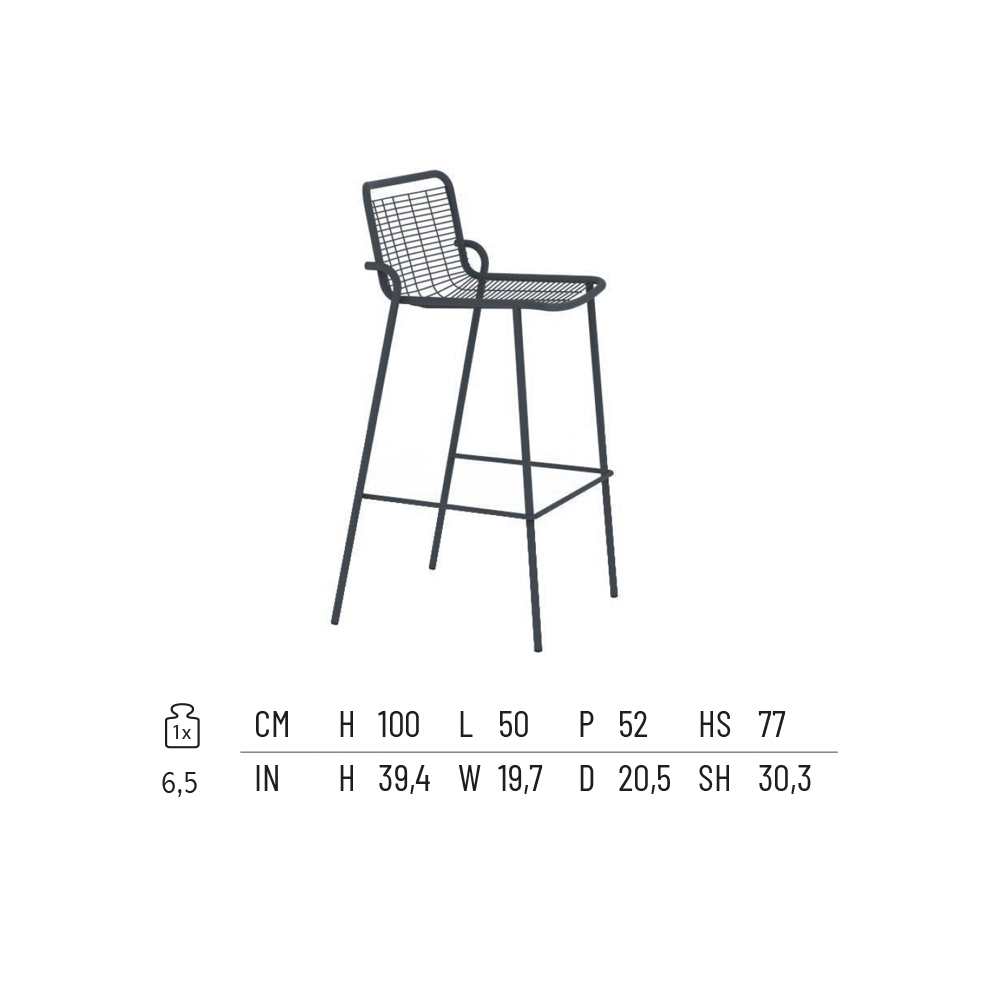 Stackable Outdoor Stool in Metal Made in Italy 2 Pieces - Vikas