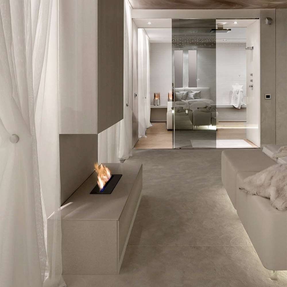 The linear design allows to combine more in line burners to create more fireplaces extended, while the possibility of realization  of measure meets all design requirements.