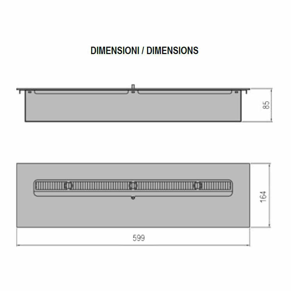 Stainless Steel Bioethanol Burner for Linear Fireplace Made in Italy - Brandon
