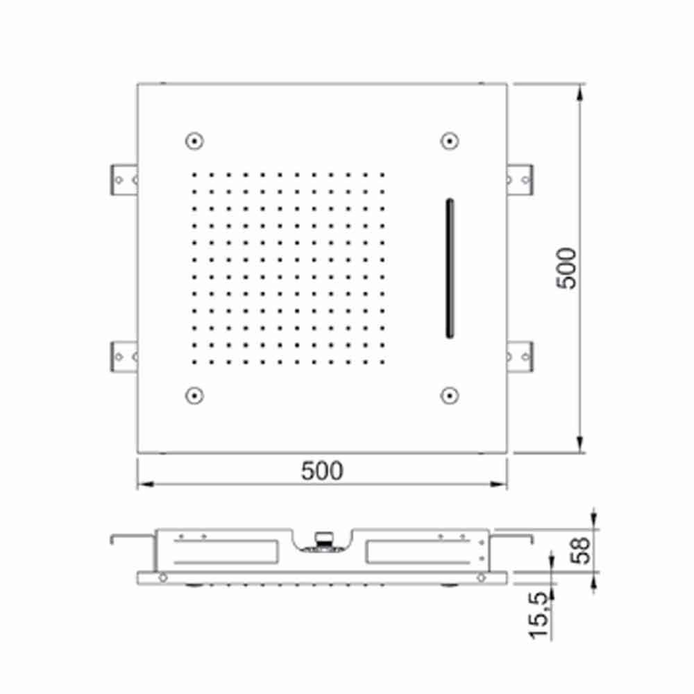 Modern square stainless steel shower head with 3 jets, high quality item Made in Italy.
