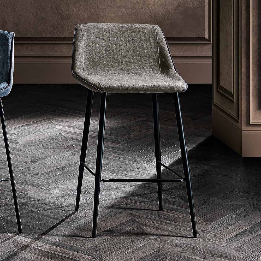 Kitchen stool made of fabric with metal round tube structure (thickness 16mm) with matt black finish, entirely Made in Italy . A piece of furniture with an elegant aesthetic and strong visual impact capable of ensuring a welcoming and comfortable seat while enriching the atmosphere of the dining room or kitchen. The design is thus functional and timeless, suitable for those who want to create a welcoming home space with delicate nuances.