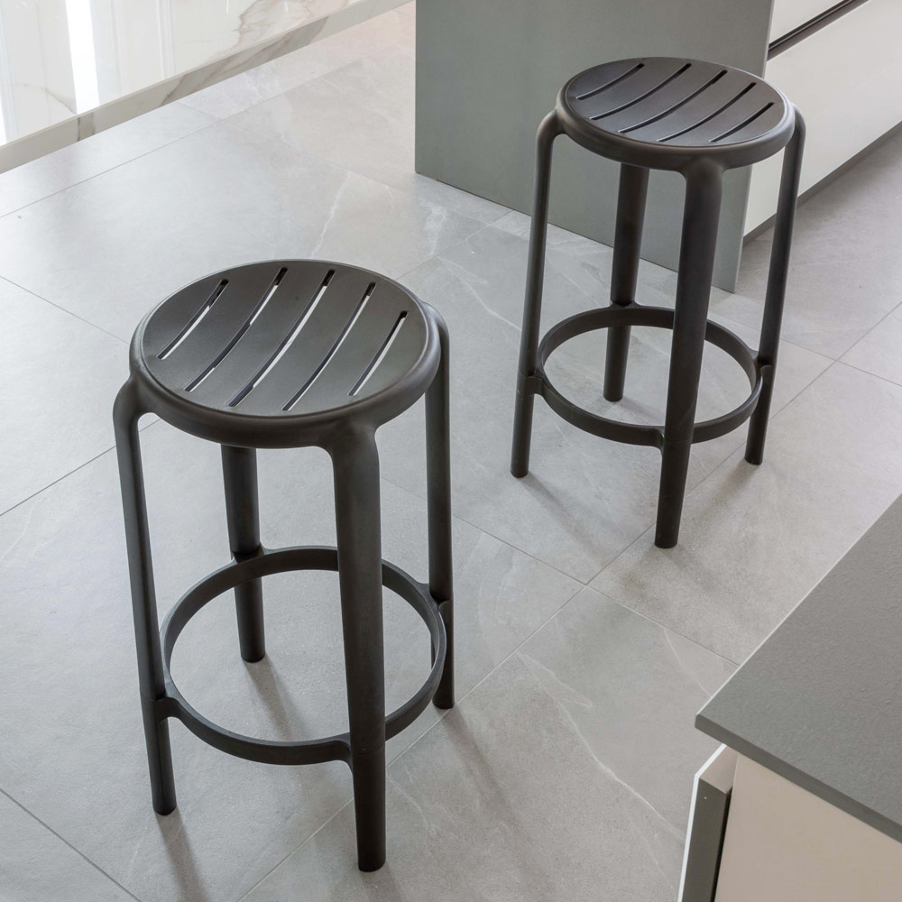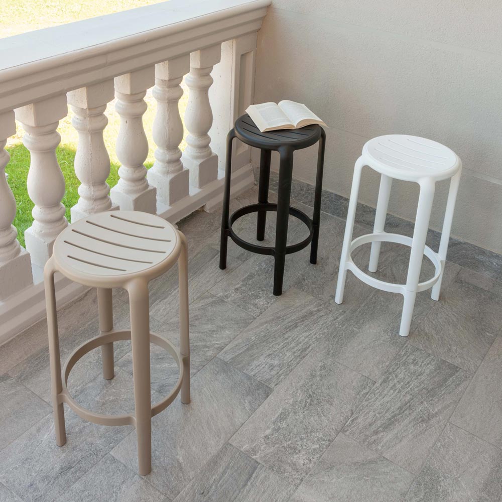 Indoor and outdoor stool made of polypropylene reinforced with fiberglass. Simplicity and functionality come together in this furniture with soft and linear finishes. It is perfect for use in both external and internal environments to better adapt to all occasions of use. Thanks to the material chosen for its construction, quality and resistance are guaranteed even over time.
