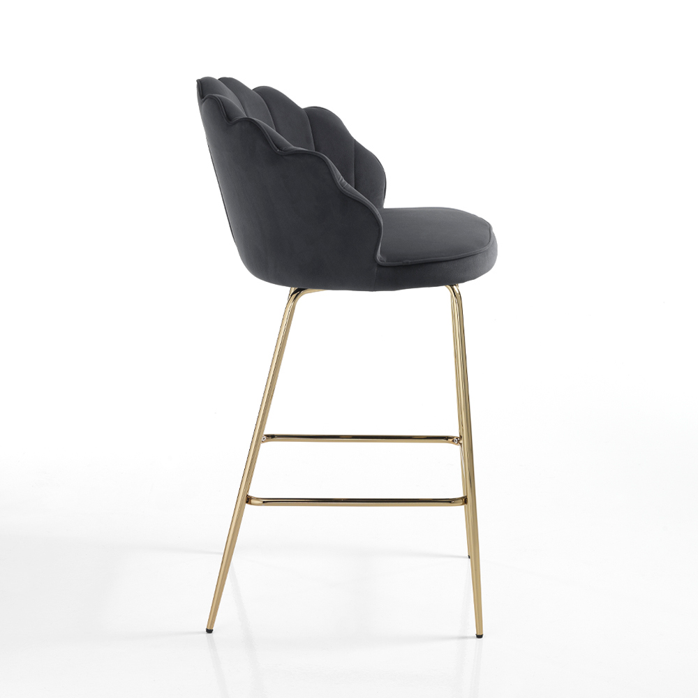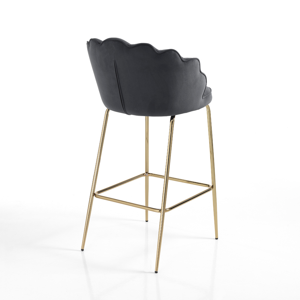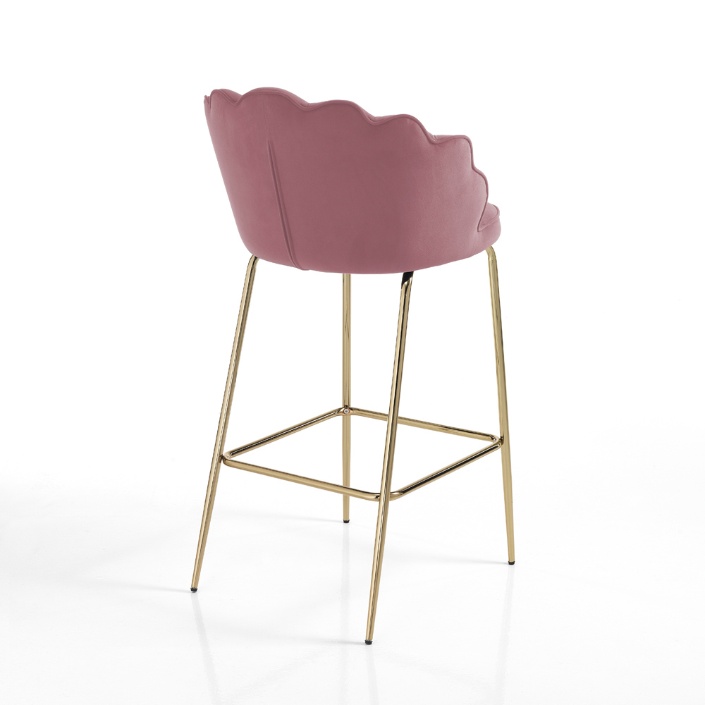 Stool made with non-removable padded seat covered in soft velvet effect fabric and shiny gold painted metal structure . This item with a modern and elegant style has simple lines that make it perfect for completing the furnishing of living areas, such as kitchens and living rooms, and also contract ones, such as bars and offices. Excellent quality materials have been chosen to ensure a comfortable and comfortable seat.