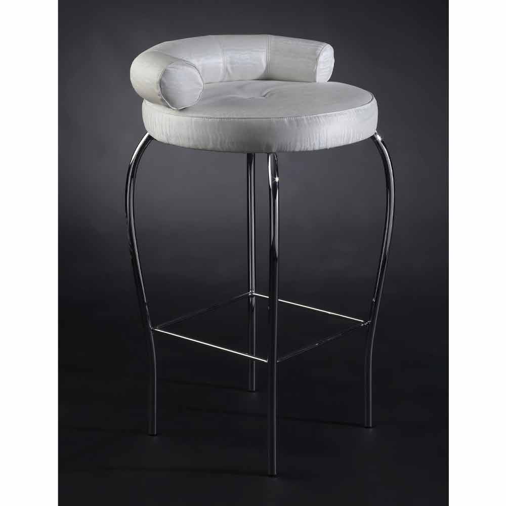 High stool ideal for bar or kitchen counters made entirely in Italy with chromed steel structure, MDF and wood shell, padding in open cell polyurethane foam with different densities and fabric upholstery. A design characterized by the use of soft and enveloping shapes that recall the feeling of a warm and welcoming embrace, ideal for offering an extremely comfortable seat . Its aesthetic combines simple and essential features with original and captivating figures for an exclusive result capable of revolutionizing in a unique way the furnishing of living spaces or contract areas with contemporary furnishings thanks to its strong modern personality and its strong scenographic impact . What is born is therefore a refined furnishing accessory that embodies comfort and design thanks to the 100% Made in Italy workmanship and the use of quality raw materials that emphasize the value and value of this elegant stool.