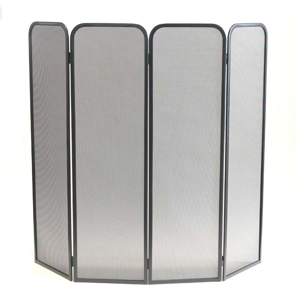 This stove guard is a functional and sophisticated design element, which plays a dual role in the management and safety of your fireplace. Comprised of four rectangular panels joined by heavy-duty hinges, this screen is constructed of finely mesh wire mesh and framed by a solid black metal border. The mesh offers an uninterrupted view of the dancing fire, allowing heat to spread throughout the environment while blocking sparks and glowing debris.
