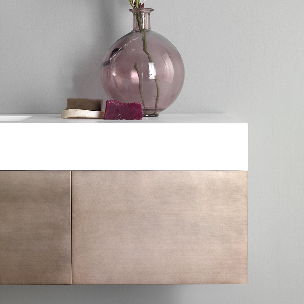 This bathroom furniture combination includes a vanity unit with drawer with practical push & pull opening system in antique copper lacquered mdf.