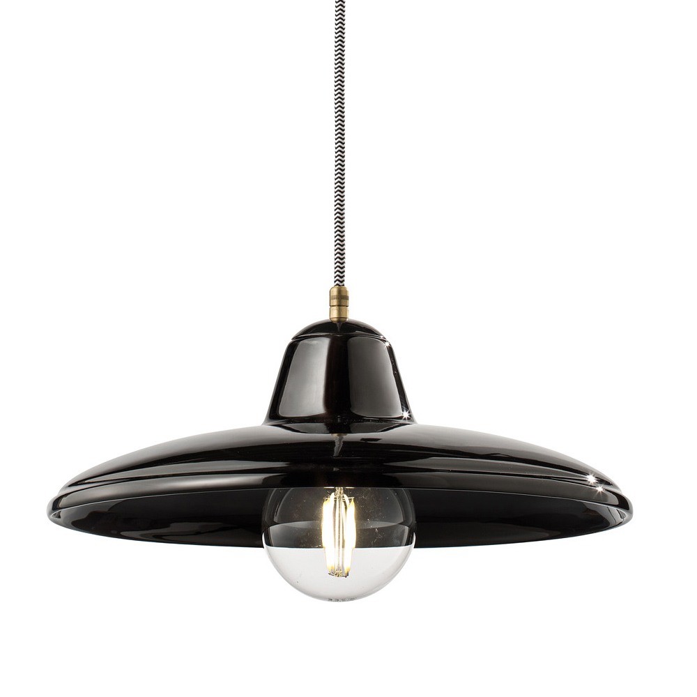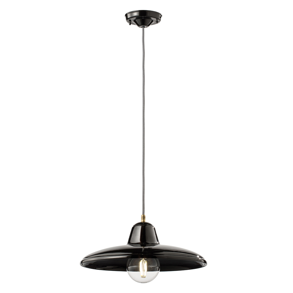 Suspended lamp in black ceramic and iron, retro style made in Italy by Ferroluce.