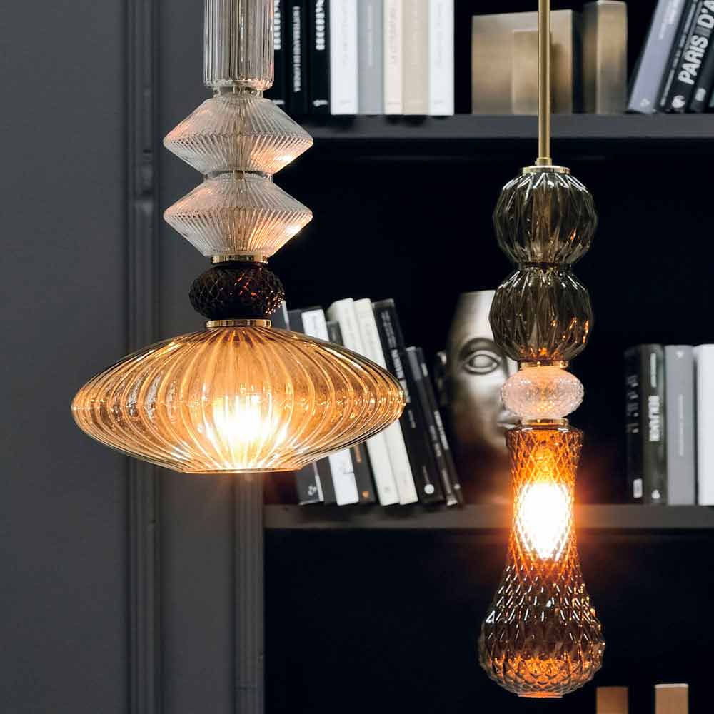 Suspension lamp in Murano glass with gold details, Made in Italy.