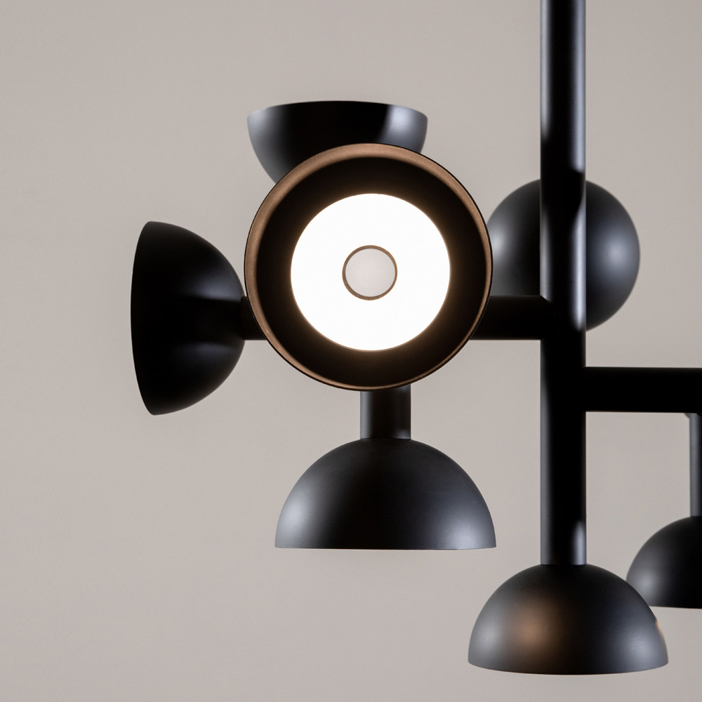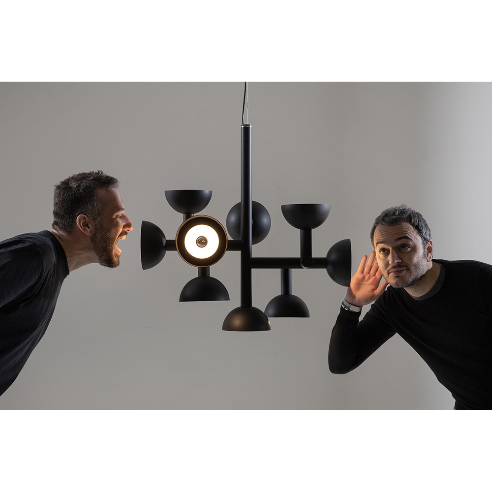 The lamp is made with an aluminum structure of two finishes for an entirely Italian design which, through unconventional experimentation and the continuous research between tradition and modernity , is able to amaze, dare and excite, allowing you to express your emotions through a original and personal decorative use of light.