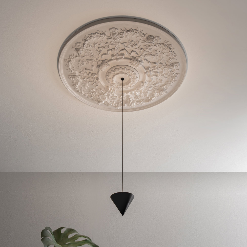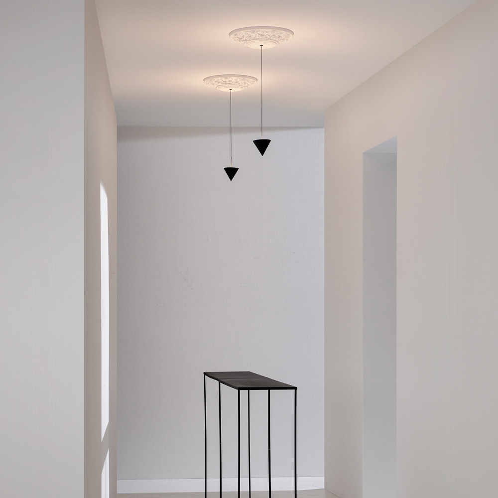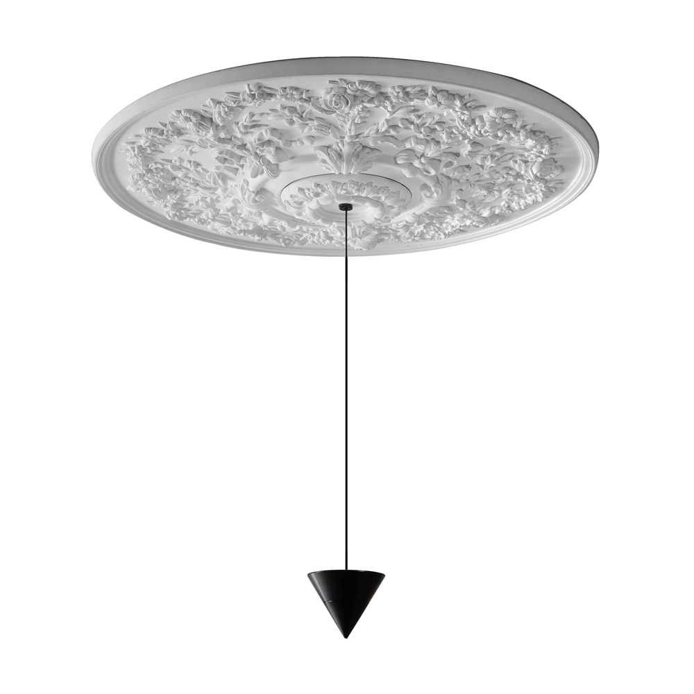Suspension Lamp Design White Gypsum and Black Aluminum 1 Cone - Tesera