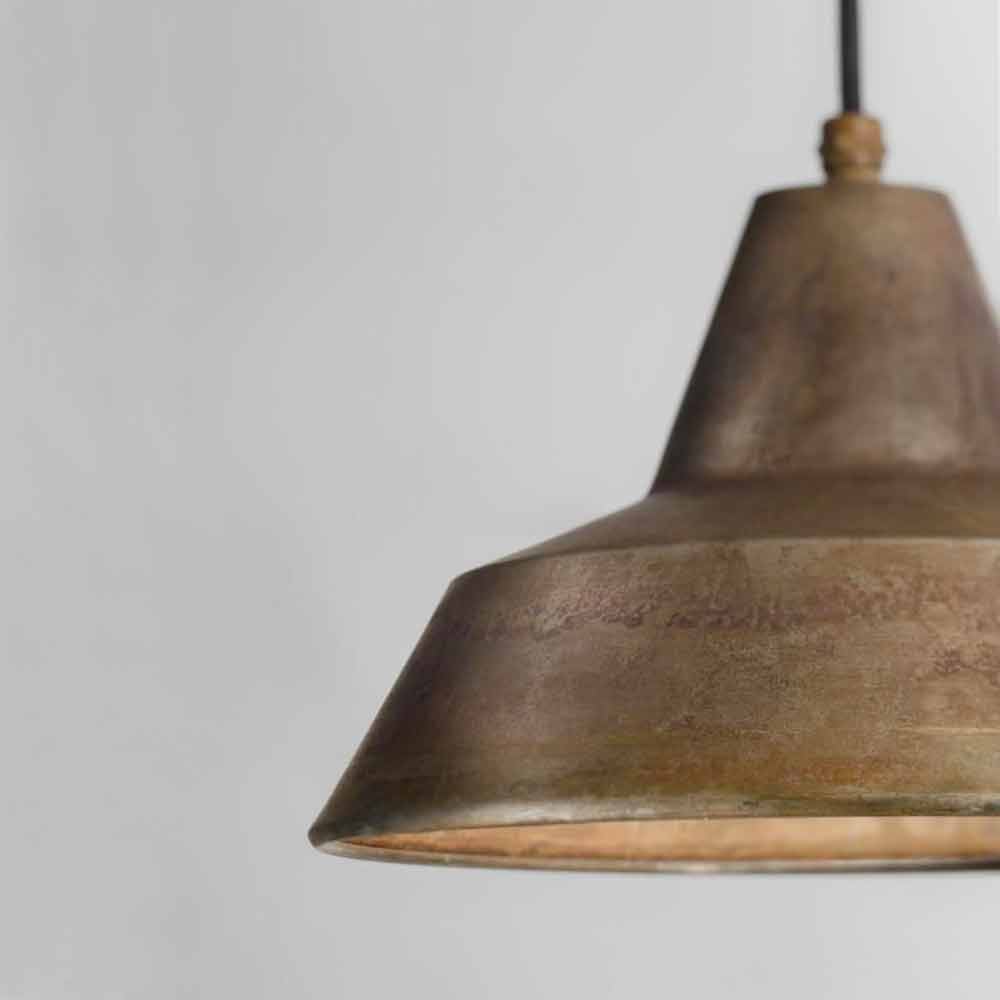 Suspension lamp in antiqued iron bell Virginia Il Fanale Virginia is a beautiful bell-shaped suspension lamp, for indoor use, with a typically industrial taste. Rough and raw appearance but of great refinement, Virginia with its minimal and essential style design is able to create refined atmospheres in the environments in which it is placed. Virginia is made of antiqued iron and is produced by artisans in Italy. The iron used is subjected to a particular accelerated oxidation treatment which gives the iron itself an aging patina, defined as "antiqued". This special processing allows the iron to take on the shades of its original color. This suspension is available in two different sizes. High quality lamp, 100% made in Italy. Bring a touch of design into your home too and choose the size that suits you best!