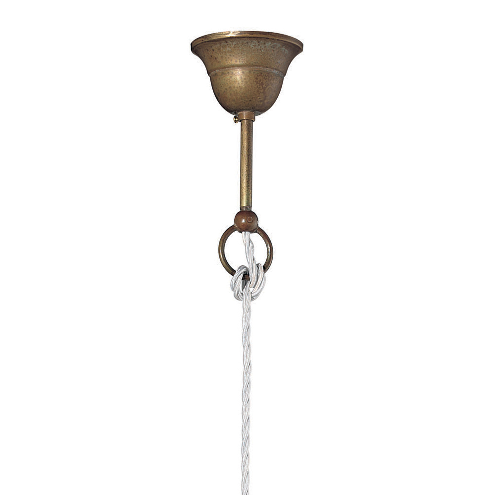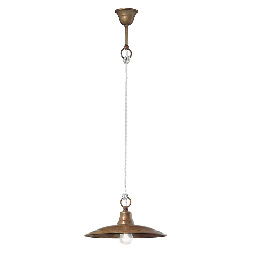 Suspension lamp made with antique brass frame,antique copper head and adjustable length cable entirely Made in Italy. In the lamps of the Chiocciola collection, made of iron, brass or antique copper, the emphasis is on functionality. Inspired by poor art, they have clean shapes, free from any artificiality. The collection consists of pendant lamps, wall lamps, ceiling lights and garden lamps.
