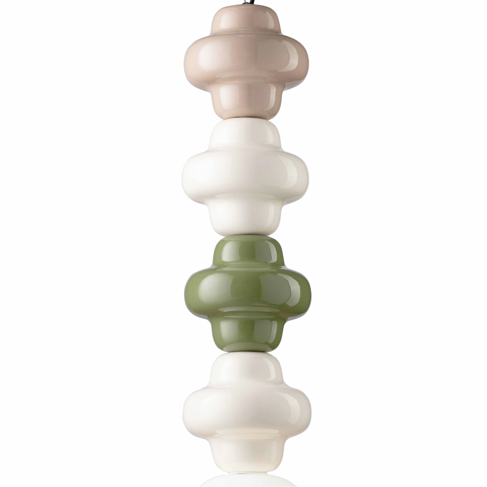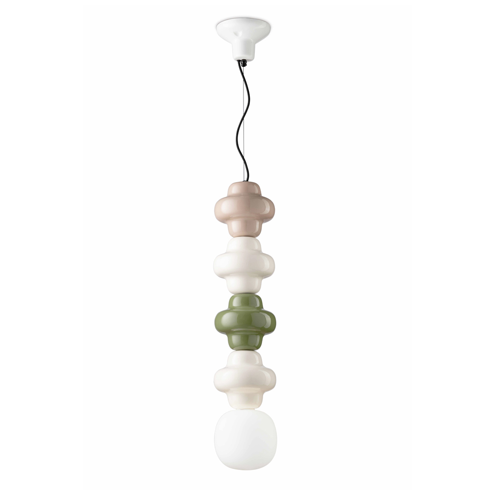 This elegant pendant lamp embodies a harmonious meeting of craftsmanship and modern design . Perfect for those who appreciate the quality of Made in Italy, the lamp features a shiny ceramic base, which recalls traditional craftsmanship and adds a touch of warmth. Its design is enriched by a satin opaline glass diffuser, which produces a soft and welcoming light, ideal for creating a comfortable and relaxing atmosphere in any environment.