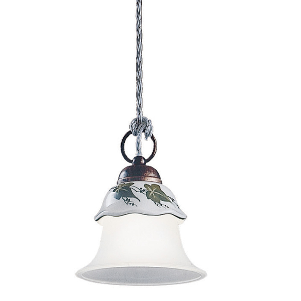 Suspension Lamp in Glass, Iron and Hand Painted Ceramic - Ferrara