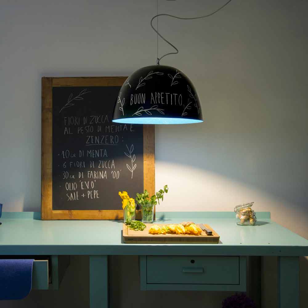 Modern suspension lamp In-es.artdesign H2o Blackboard in resin The H2o Lavagna suspension lamp from the Matt collection by In-es.artdesign has a structure in: laprene, nylon, steel, nebulite, blackboard effect resin. Nebulite® is an innovative material composed of resin and fiber, whose veins give the lamp a particular "lunar" effect; while the resin is the leading material of the H2o Lavagna lamp as on its surface it can be written and erased like a real blackboard.