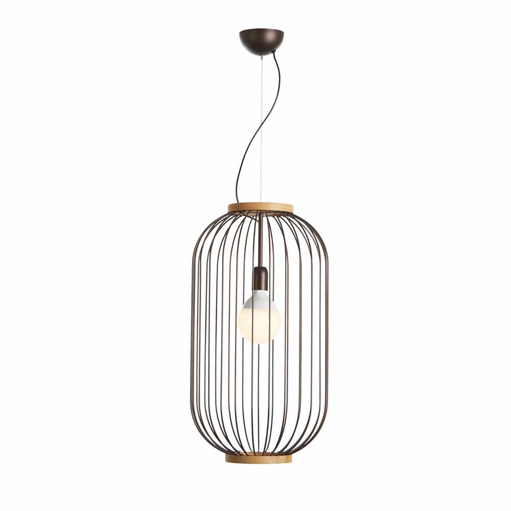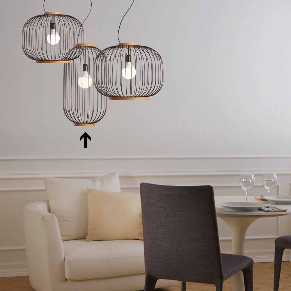 Suspension lamp made of shaped steel bar and painted with epoxy powders. The two bands that close the rounded body are made of natural wood. Bibiana is also available in customized colors. Request a quote to: clienti@viadurini.it . 100% Made in Italy product. Bulb: 1 x max 60w - E27 (not included).