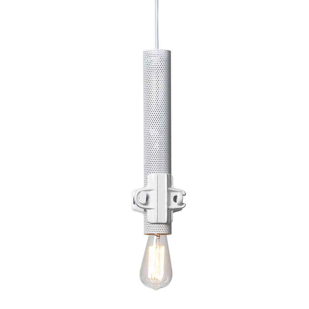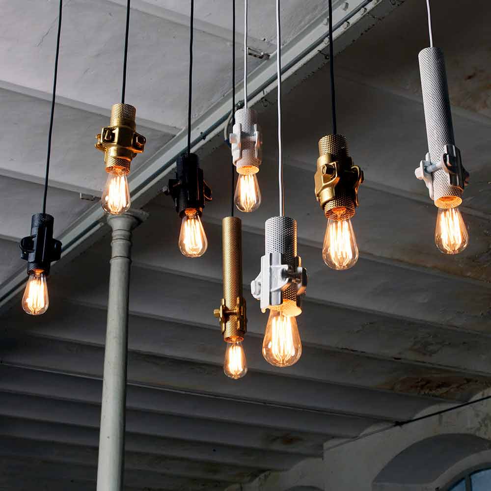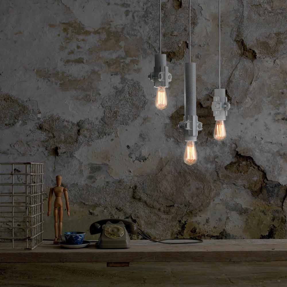 This original and singular suspension lamp is composed of a tube and a joint, two elements that can transform themselves into light vectors for a design between the technical and the sophisticated, of industrial style.