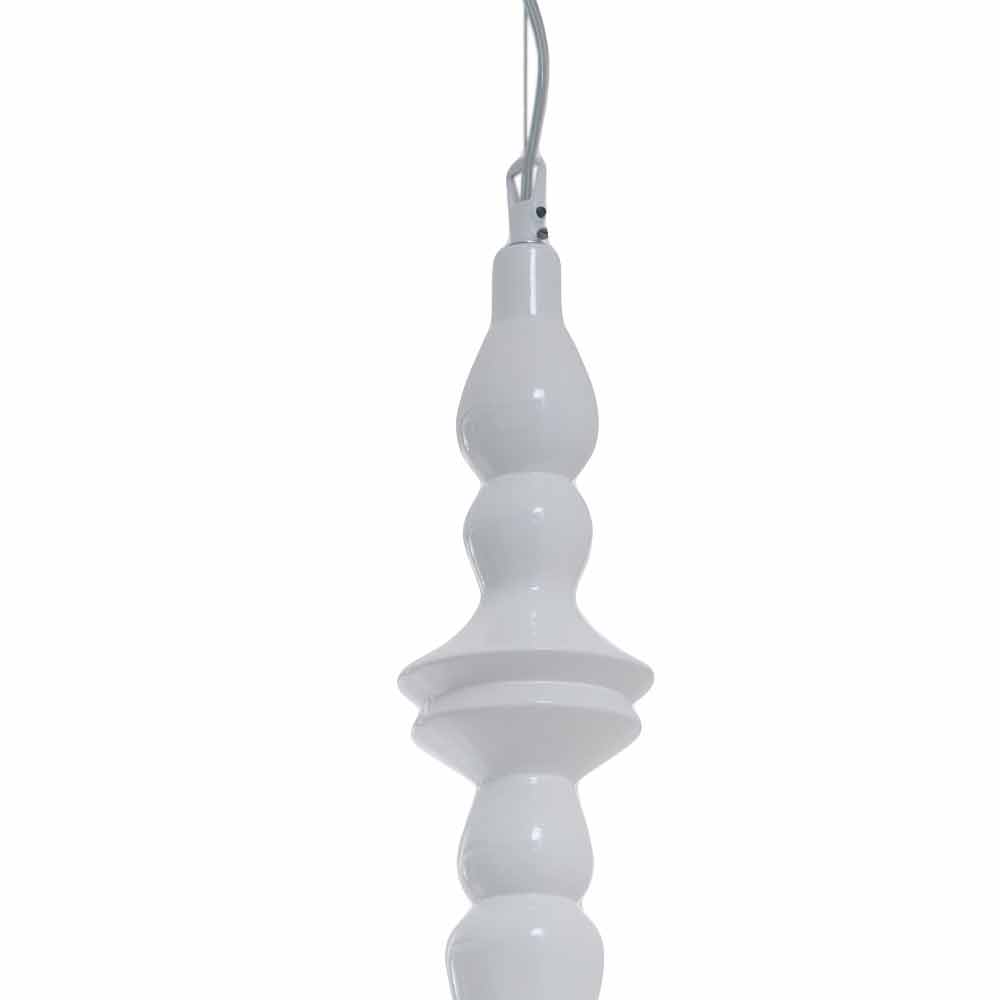 The lamp is made of glossy white ceramic as a material that represents the origin, the malleability, the creation and that leads directly to the origins of our culture.