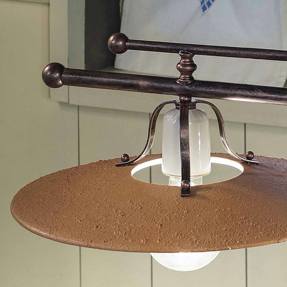 The 2-light pendant lamp is entirely made of iron and ceramic with rough and rough finishes that highlight the craftsmanship and dexterity of the craftsmen.