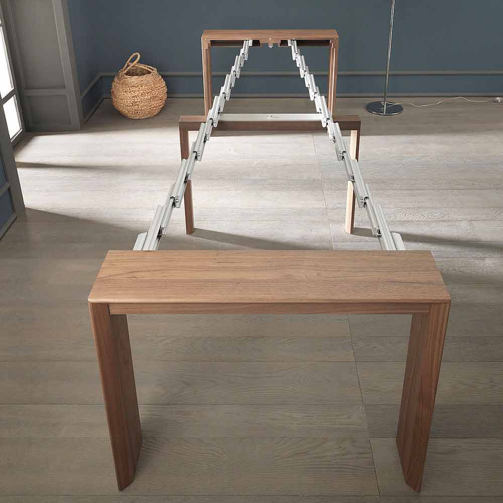 Console convertible into a dining table in veneered wood with central swivel legs Made in Italy.