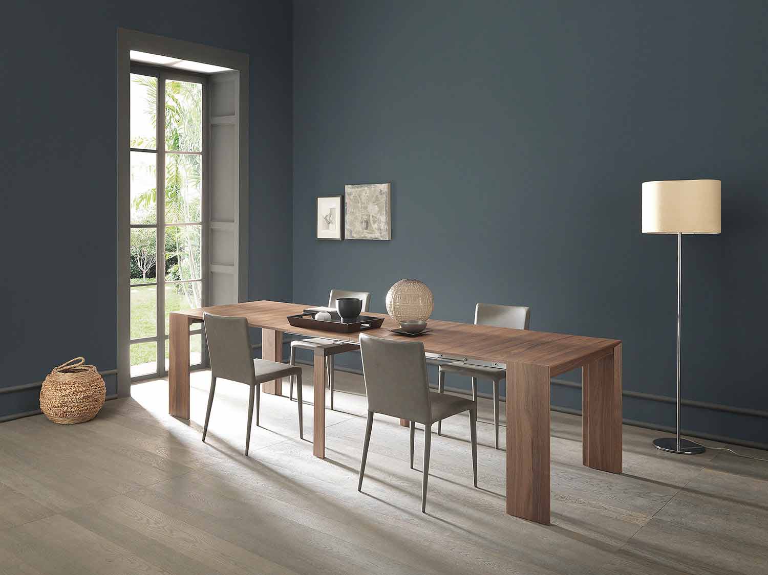 extendable console is characterized by refined and modern lines capable of enhancing lamps and ornaments.