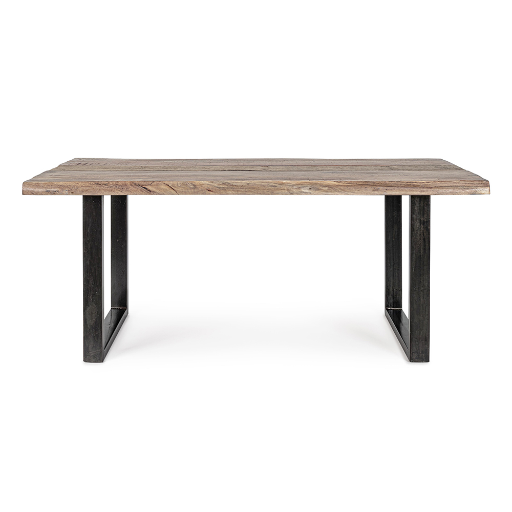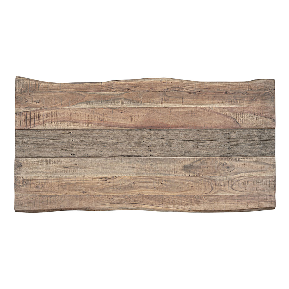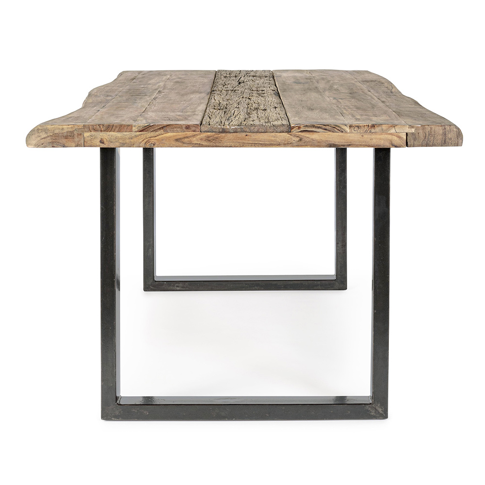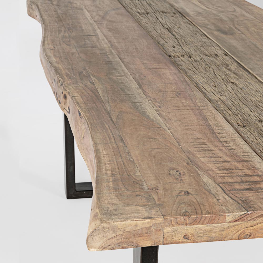 Dining table in acacia wood with recycled insert and steel base, 8 people.