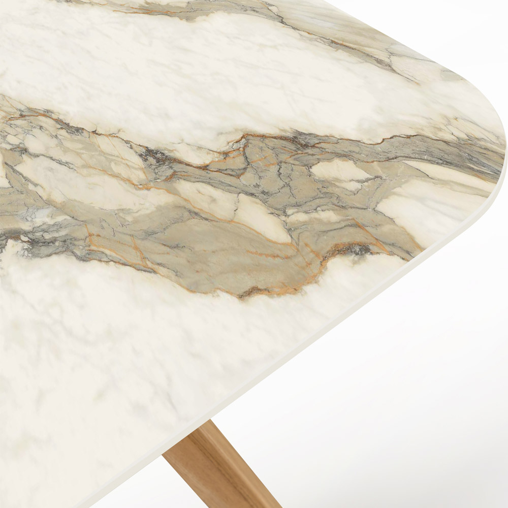 Table with Wooden Base and Ceramic Top Calacatta Hermitage - Infinity