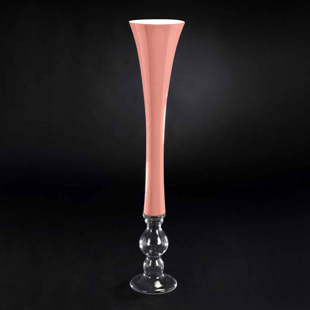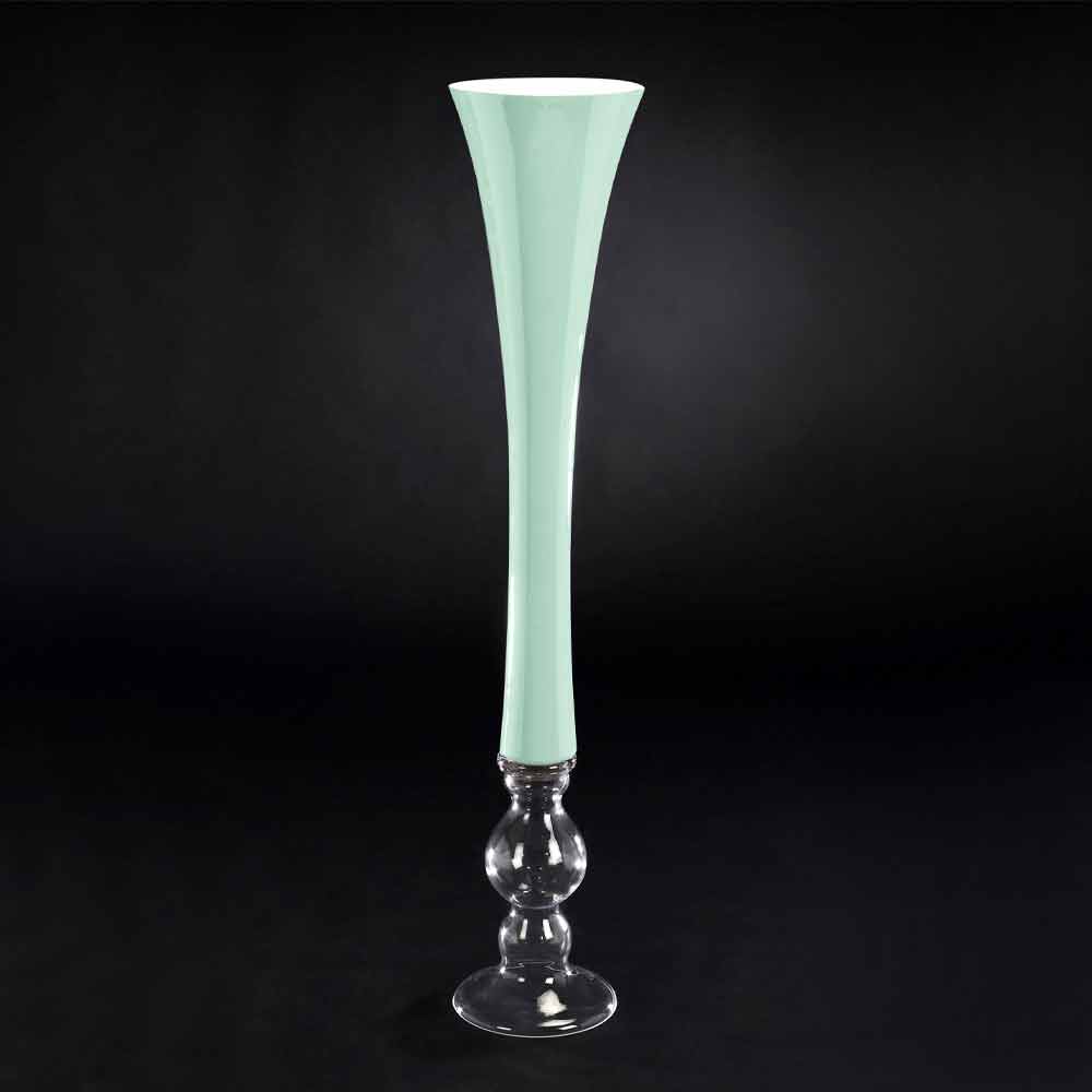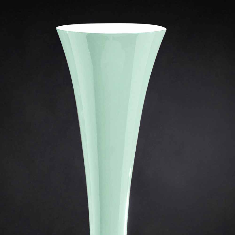 Modern vase for interiors in colored glass with white interior and transparent base entirely made with a 100% Made in Italy processing . A lively and modern furnishing idea whose structure develops in height offering a slender figure with a contemporary aesthetic . The wonderful colors proposed allow you to create a perfect harmony with any style of furniture making it a particularly versatile solution. An ideal design for the most varied environments, from home furnishings to that of hotels, restaurants, contract areas, spas but also as a setting for events and weddings.