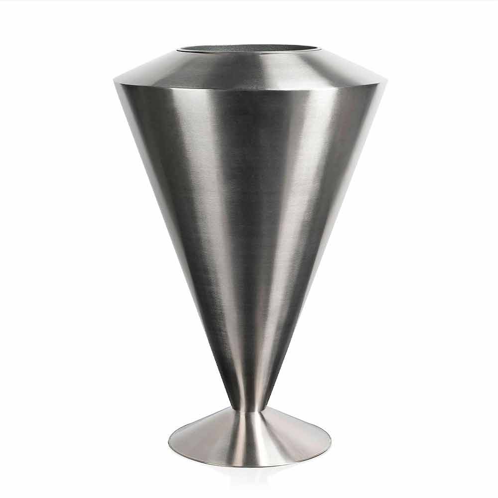 Indoor decorative vase made of brushed steel   through a 100% Made in Italy production . A piece of furniture that is both modern and functional, offering a perfect solution to enrich the surrounding furniture with personality and style. The use of steel maximizes its efficiency, allowing it to adapt to any stylistic situation in a harmonious and impeccable way for an original and discreet result at the same time. An ideal design for the most varied environments, from home furnishings to that of hotels, restaurants, contract areas, spas but also as a setting for events and weddings.