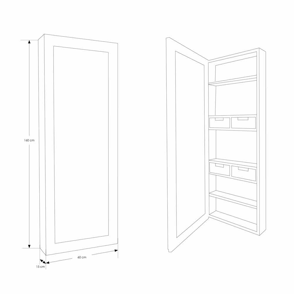 The mirror with frame and structure in precious Burma Teak is also a fabulous container. When the door / mirror is opened, there are 4 shelves and 4 drawers. Perfect for cosmetics and medicines, for hygiene products or bijoux. It finds its place not only in the bathroom, but can be used in the bedroom, living room or hall! Supplied with wall attachments and instructions with attached screws and fisher for assembly.