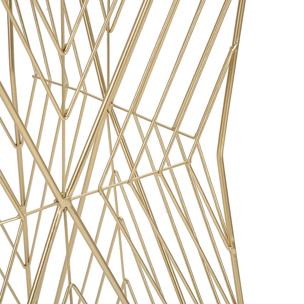 This coffee table combines the warmth of modern design with the functionality desired in every home. Its base is a geometric tangle of golden iron lines, which intersect creating an almost hypnotic effect, a sculpture that supports a sober support surface. The open silhouette does not weigh down the space, but rather adds an element of light elegance .