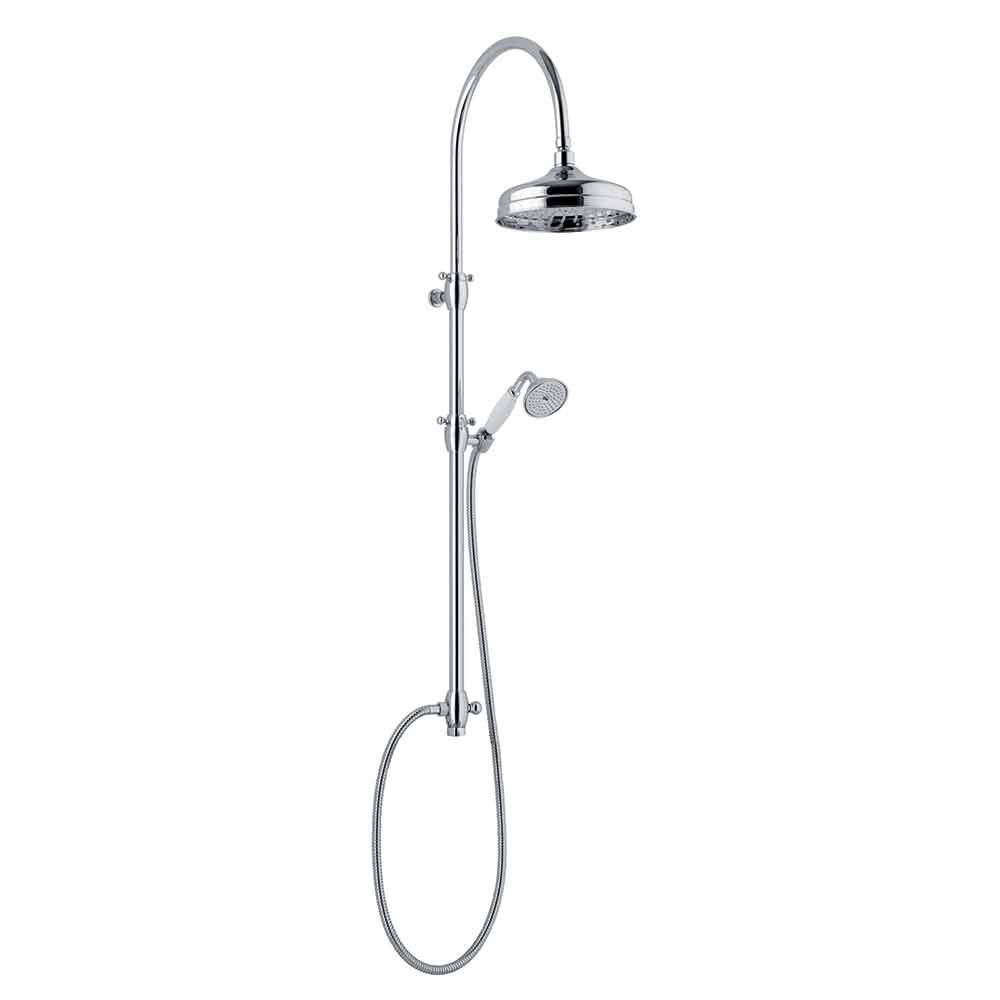 Shower column with diverter made in Italy with brass structure in chrome finish complete with shower head, shower and hose. Classic lines and traditional look are the main features of this furnishing accessory, ideal for making your bathroom area unique. Thanks to the particularity of the details that enrich the design, the shower column enhances the entire environment, emphasizing its elegant and refined taste and completing the furniture with harmony.