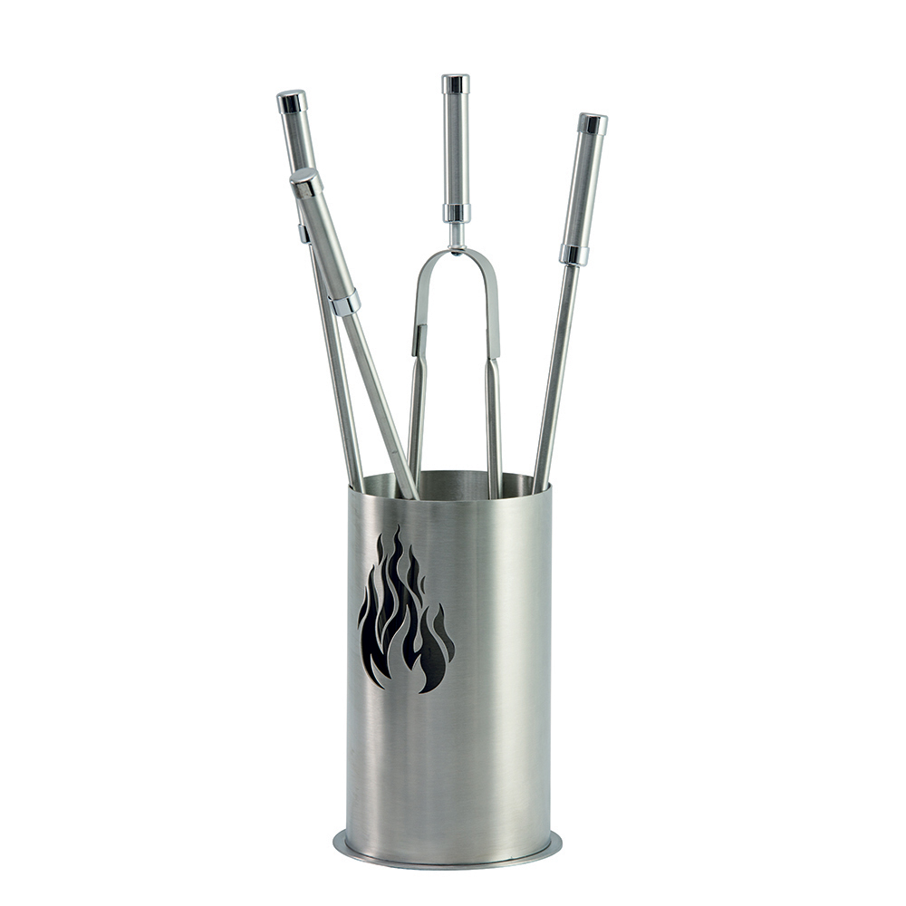 This fireplace tool holder, made of high quality stainless steel, is a must-have for anyone who wants to combine functionality and elegance. Its contemporary design, characterized by clean lines and an eye-catching flame-shaped carving , makes it a true art object, perfect for adding a touch of modernity to the traditional fire ritual.