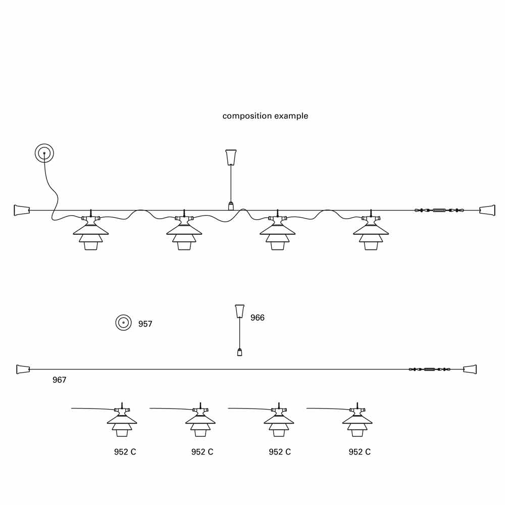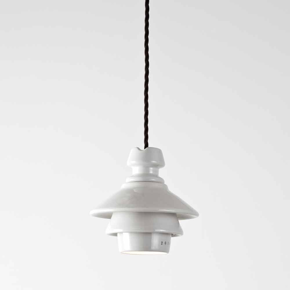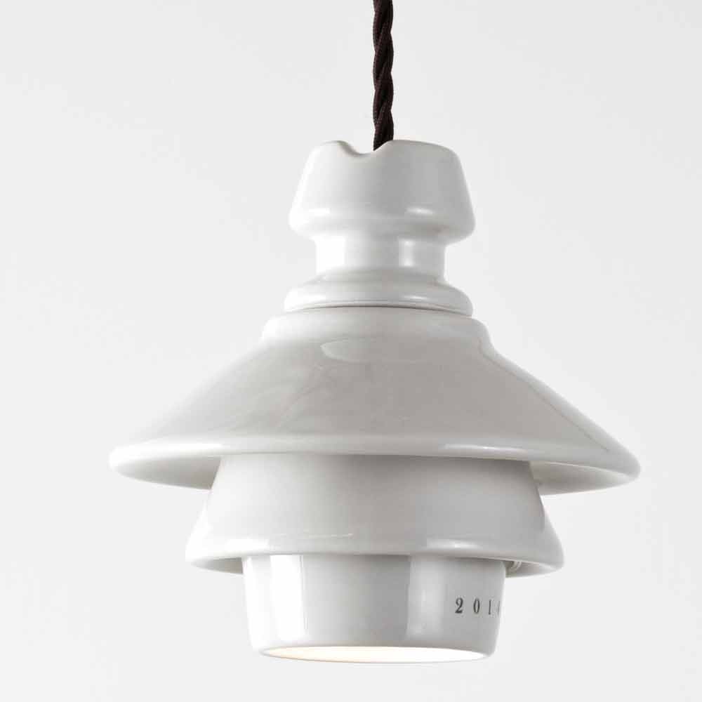 Suspension Lamp with Terracotta Plate Battersea by Toscot . The name of this series is inspired by the famous thermo-electric power plant built in 1933 in Battersea (London). The design is reminiscent of the old electrical insulators made between the 19th and 20th centuries. Despite the Vintage reference, the lines of these lamps remain current and can be inserted in various environments. You can customize the Battersea lamp by choosing from the following colors: matt black and oyster. The following colors can also be chosen for the cable: gold, brown and ivory. Indicate the desired colors in the appropriate box next to the product photo. Direct light Dimensions : Ø16, H 16 cm; 3 m cable Bulbs : 1 x E27 max 70W - not included IP: 20 To be connected to the ceiling rose article 970 . Thanks to the ceiling rose it is possible to create interesting light compositions, combining this lamp with the other suspension lamps of the collection: 951, 954-22 and 952. Browse the product photos to see examples of compositions.