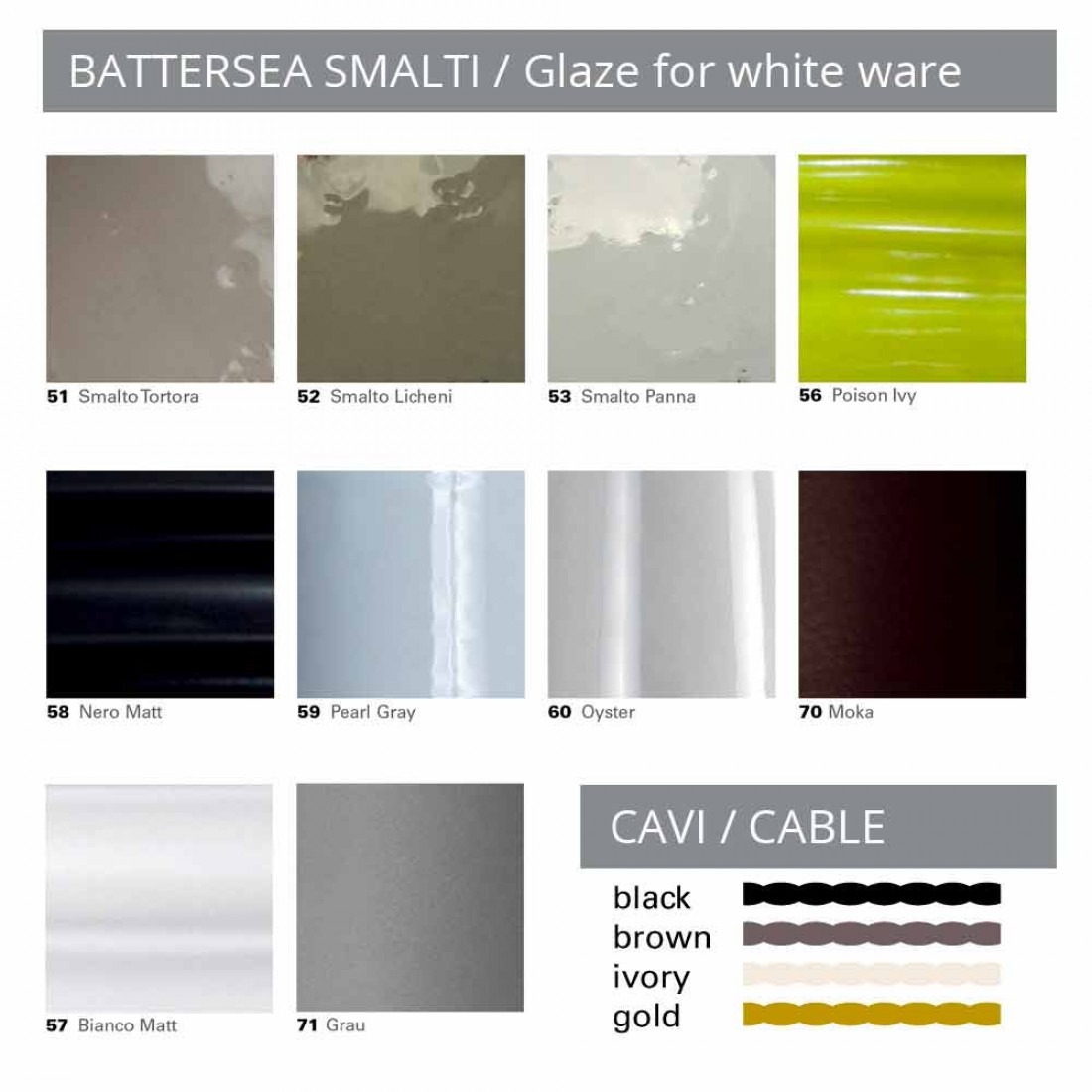 Note: Lamp available in different chromatic variations, both for the external finish and for the power cable. View the color chart and indicate the desired color codes in the appropriate box.