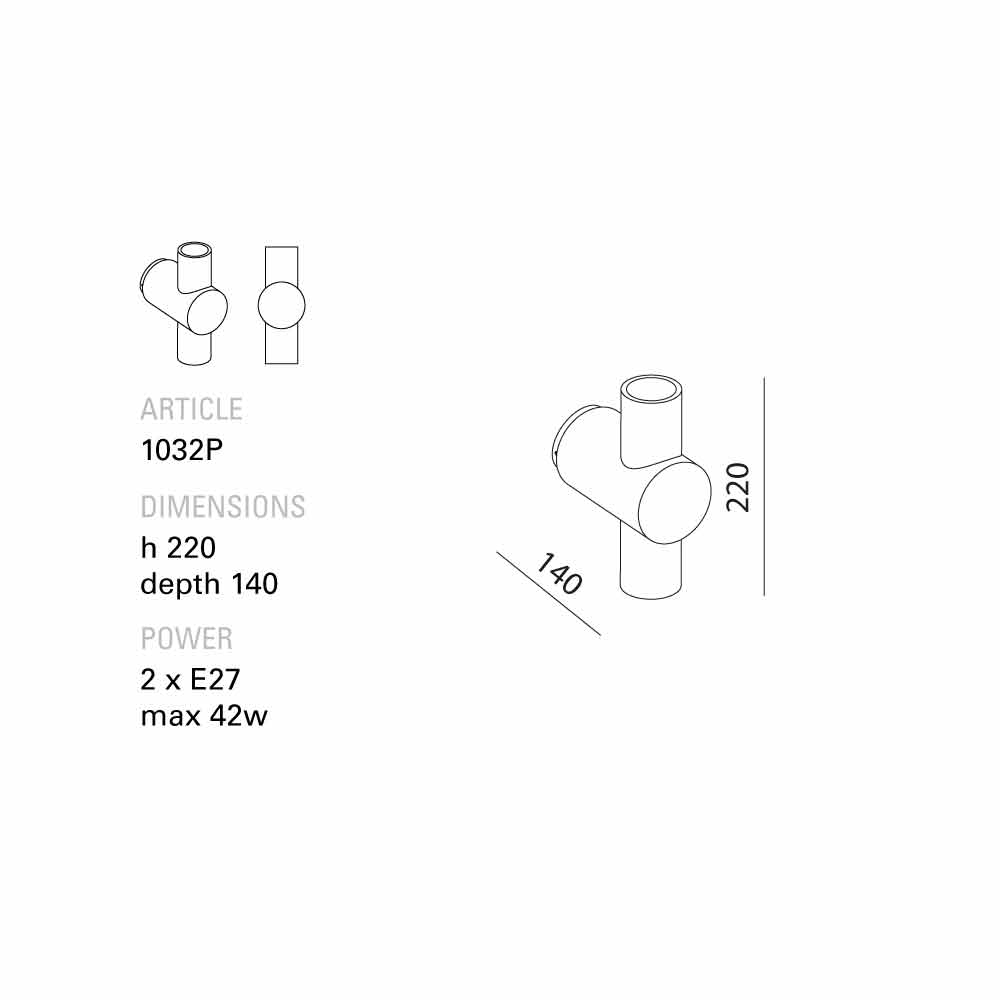 Toscot Traffic wall lamp with metal base produced in Tuscany The model consists of a central cylinder that contains the electrical connection, from which other lateral cylinders branch off in various positions. It is made of white cast ceramic, painted with enamel and double fired at over 1000 degrees. The metal components are of various colors including white and orange, this takes its cue from the first industrial products of the 60s, or fluorescent green as the signal clothes of those who work on the streets. Bulb: 2xE27 max 42w IP : 20