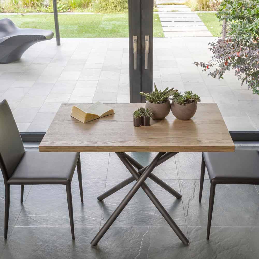 Convertible coffee table in metal and wood made in Italy.