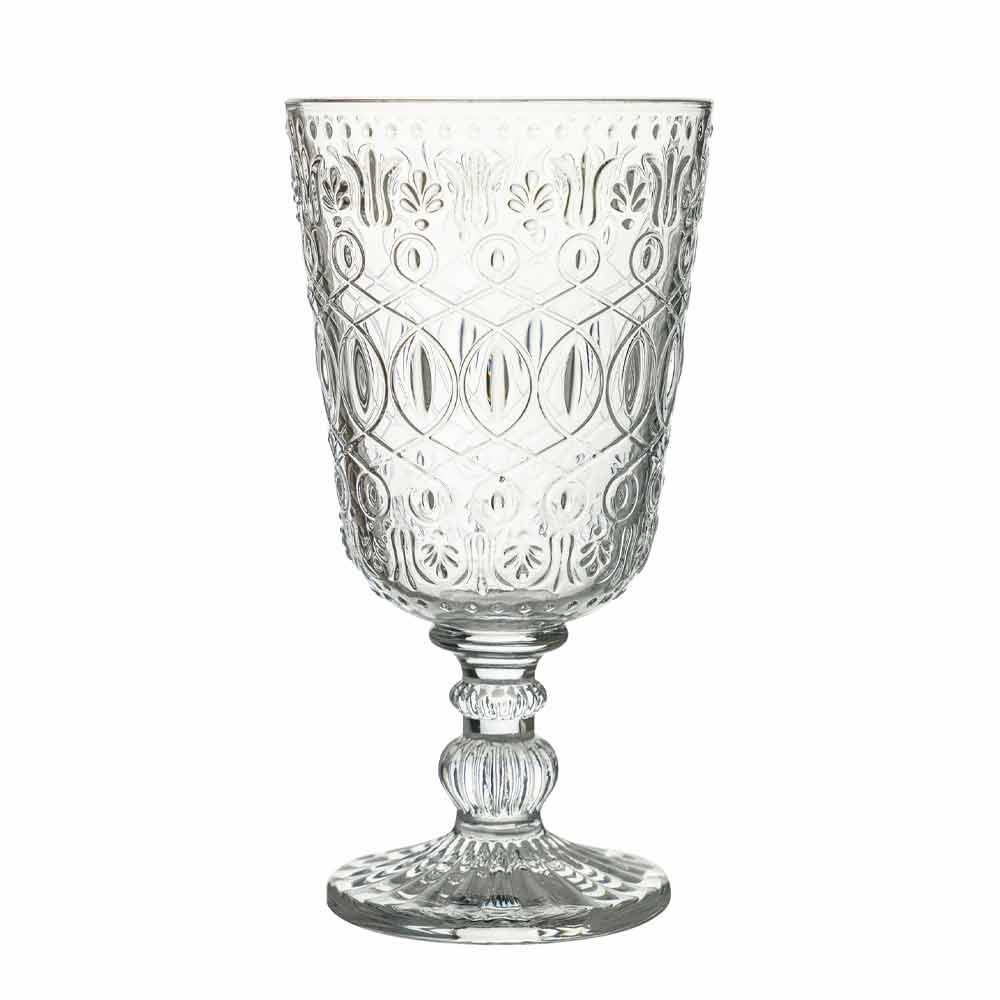 For those who want to create a spicy atmosphere on the laid table, this set of wine glasses are ideal. Delicate arabesques are engraved on the surface which, with the transparency of the material, is unique and precious.