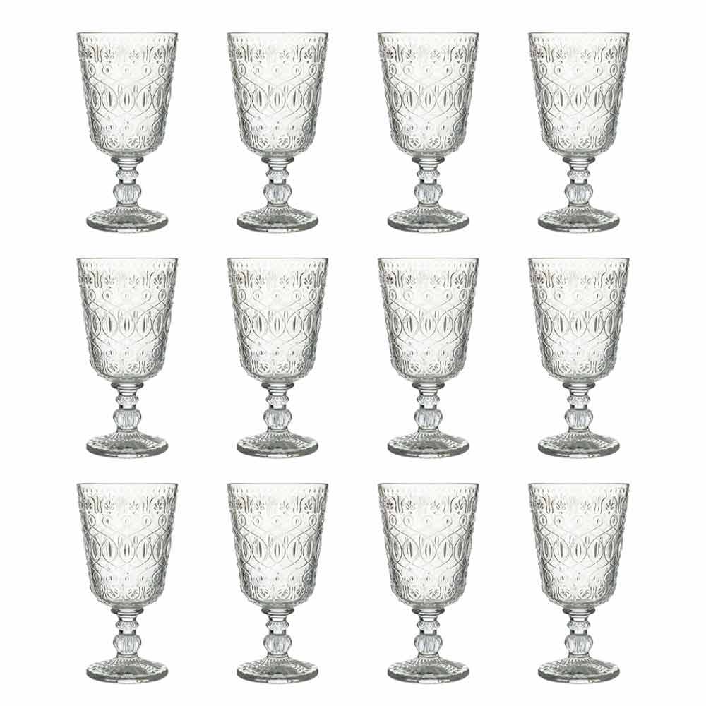 12 Wine glasses in transparent decorated glass, also ideal for the Christmas table.