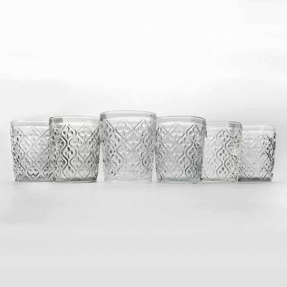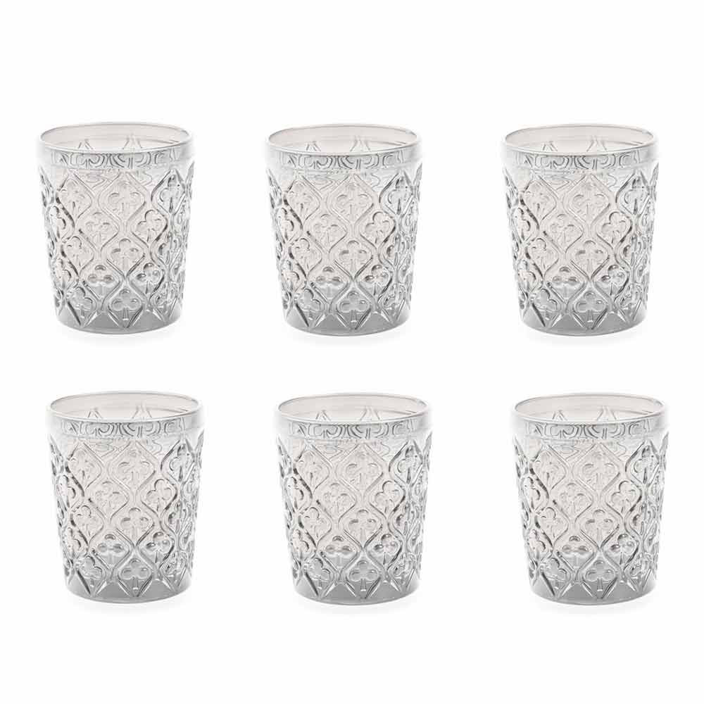 For those who want to create a spicy atmosphere on the laid table, this set of water glasses are ideal. Delicate arabesques are engraved on the surface which, with the transparency of the material, is unique and precious.