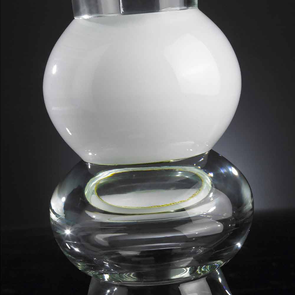 Indoor ornamental vase in white and transparent glass Made in Italy.