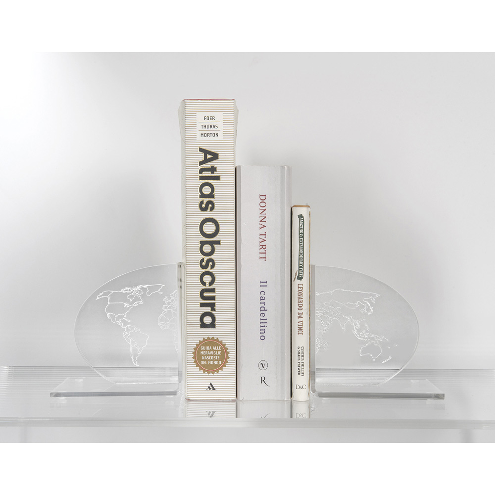 Bookends in transparent plexiglass, map design 2 pieces made in Italy.