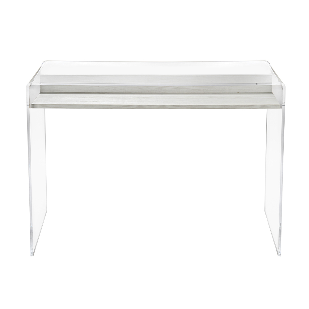 Modern design console in laser-cut transparent plexiglass with wooden shelf, design made in Italy.