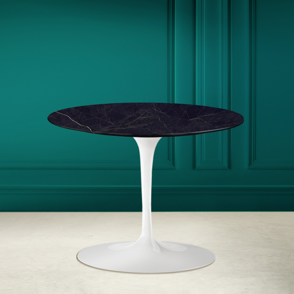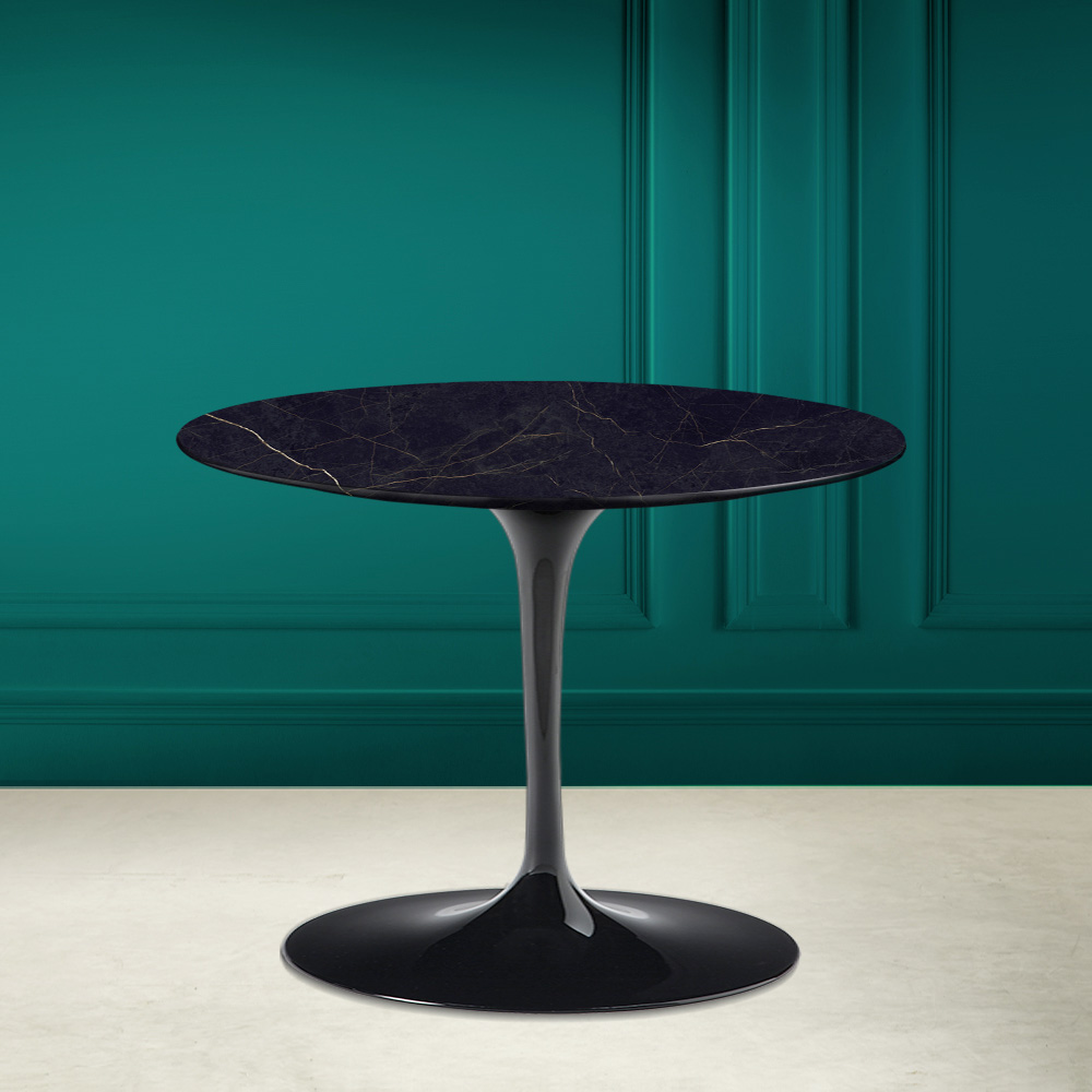 Coffee table entirely made in Italy with round top in Noir Laurent ceramic, matt Noir Laurent marble effect , and polished aluminum base. The iconic veins of the Laurent noir ceramic make this coffee table a unique and special product, with a modern and contemporary style suitable for any furnishing style. This element, thanks to the materials with which it is made, combines elegance with functionality and becomes perfect for every situation and occasion of use. It gives the room a fresh and refined touch and is the brilliant idea for all those who love to furnish with taste and style without sacrificing practicality and quality.