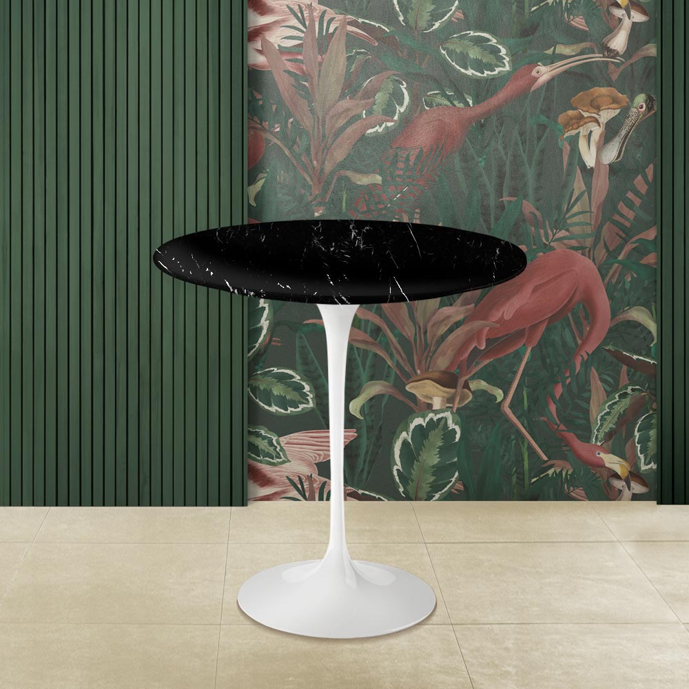 Coffee table with round top in black marquinia marble and polished aluminum base entirely made in Italy . Black Marquinia marble is universally known as one of the most valuable marbles and is what characterizes this furnishing element. The union between black marquinia marble and polished aluminum creates a product with a unique and refined style that can be inserted into any furnishing style thanks to its simplicity and elegance. This coffee table is an original idea for all those who love to furnish the various living areas of the house with taste and style as it has simple and linear finishes that make it suitable for every style. Quality and resistance are the key words to describe this furnishing accessory which becomes excellent for any eventuality and occasion of use.