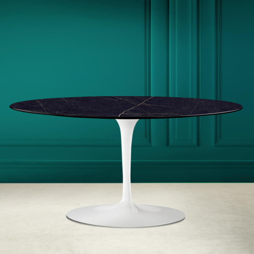 Oval coffee table with Noir Laurent ceramic top, matt Noir Laurent marble effect , and polished aluminum base entirely Made in Italy. Thanks to its simple and linear finishes, this table is the perfect idea for furnishing any living environment with taste and refinement. Laurent noir ceramic gives a unique and sophisticated touch to the product with the modern and lively character of its veins . It is a coffee table suitable for all occasions of use which combines elegance with practicality , guaranteed by the materials used and their colours. This piece of furniture can be an original idea to place in the room to give it a unique and welcoming soul.