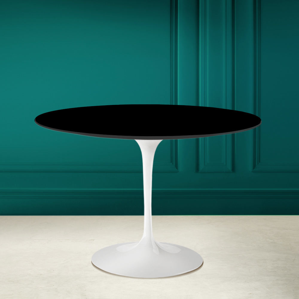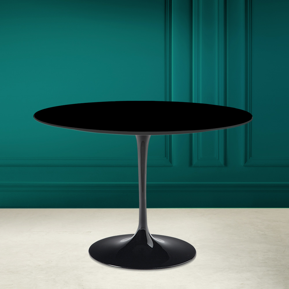 Dining table with round top in absolute black ceramic Made in Italy