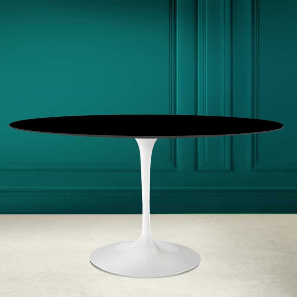 Dining table with oval top in absolute black ceramic, matt absolute black effect , and polished aluminum base entirely Made in Italy. This table has two characteristics that make it unique in its kind: the oval shape and the absolute black ceramic. The innovative oval shape is increasingly used to furnish living rooms and kitchens with an original idea as it adapts perfectly to a modern and refined style. The complex and sophisticated graphics and coloring of the absolute black ceramic makes the room a warm and welcoming place, guaranteeing functionality and quality even with the passage of time. This table is ideal for those who want to give the room a unique and unforgettable soul.
