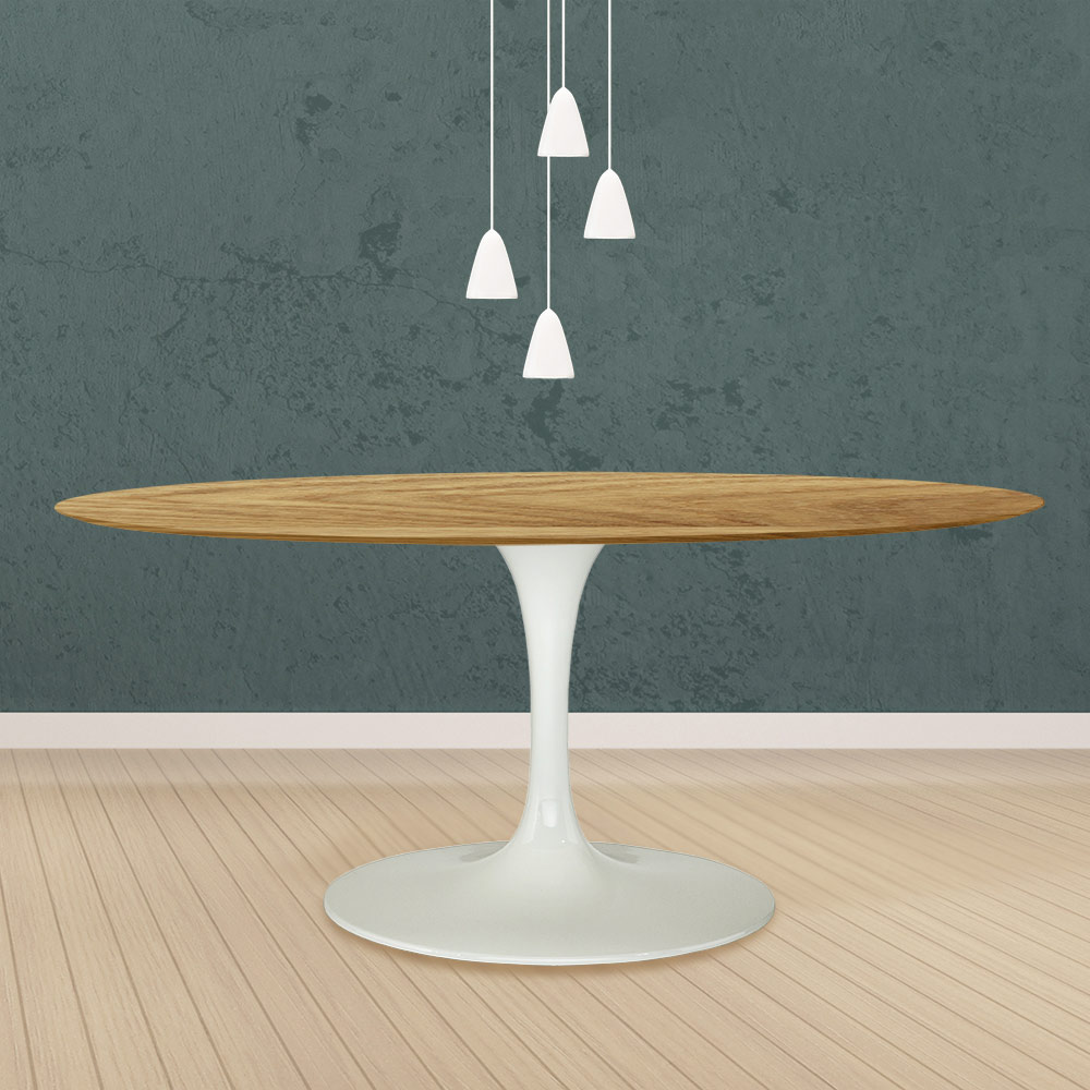 Dining table with oval top in natural oak and polished aluminum base entirely made in Italy . The unprecedented union between the oval shape and the natural oak top gives this table a touch of uniqueness and unmistakable elegance . It is perfect for completing the decor of any living room and kitchen thanks to its simple and refined finishes that give the room a warm and welcoming atmosphere. The materials used for the production guarantee quality and resistance even with the passage of time and make this product suitable for any situation and occasion of use.